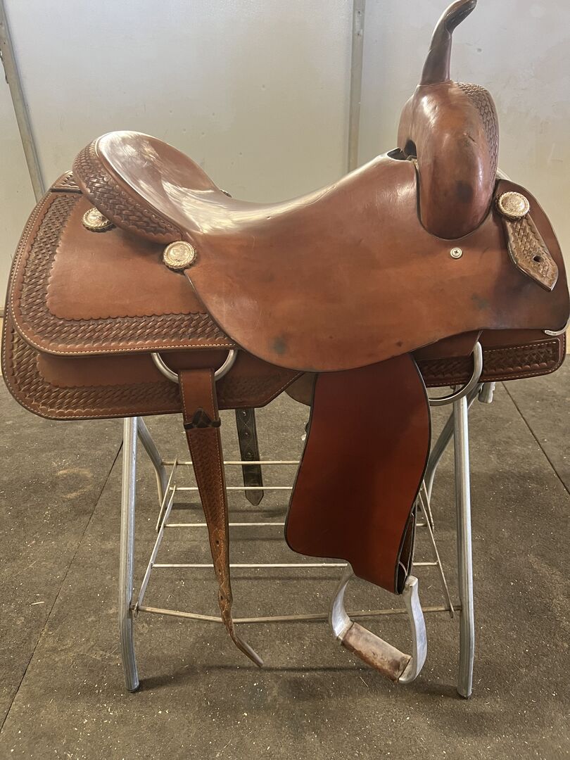 This is an older Roohide, built in 2003. number EGO 2103 0903J Roo. Has a ROO tree medium pocket. 16 1/2 “seat. The saddle is an excellent condition, been kept in a heated tack room. I lost my horse couple years ago. The saddle doesn’t fit my new horse. This is the only reason why I’m selling it. If you have any questions about this saddle, you can contact John at Roohide. Old owner was Jo Trenhail.