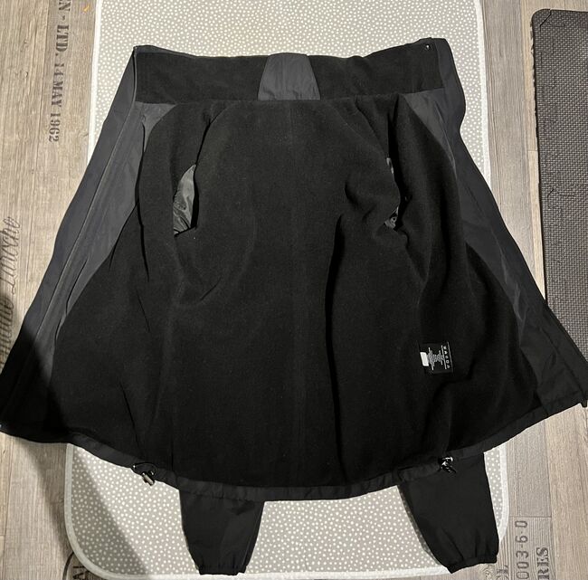 Verborgen capuchon, fleece voering, verstelbaar aan de onderkant.