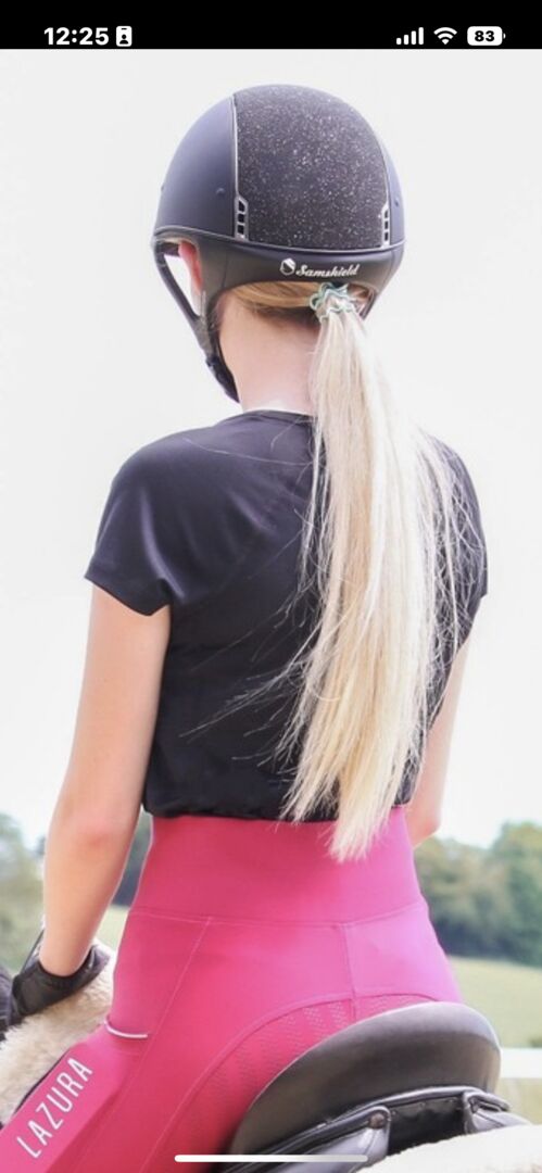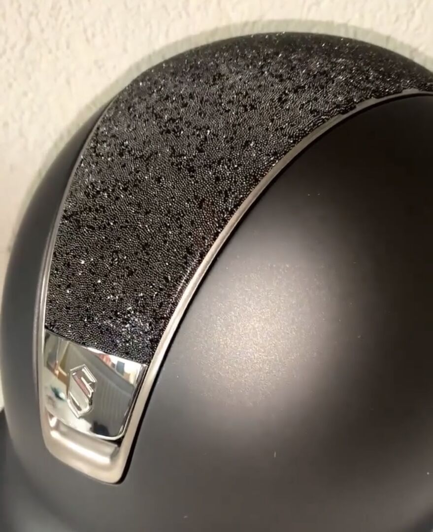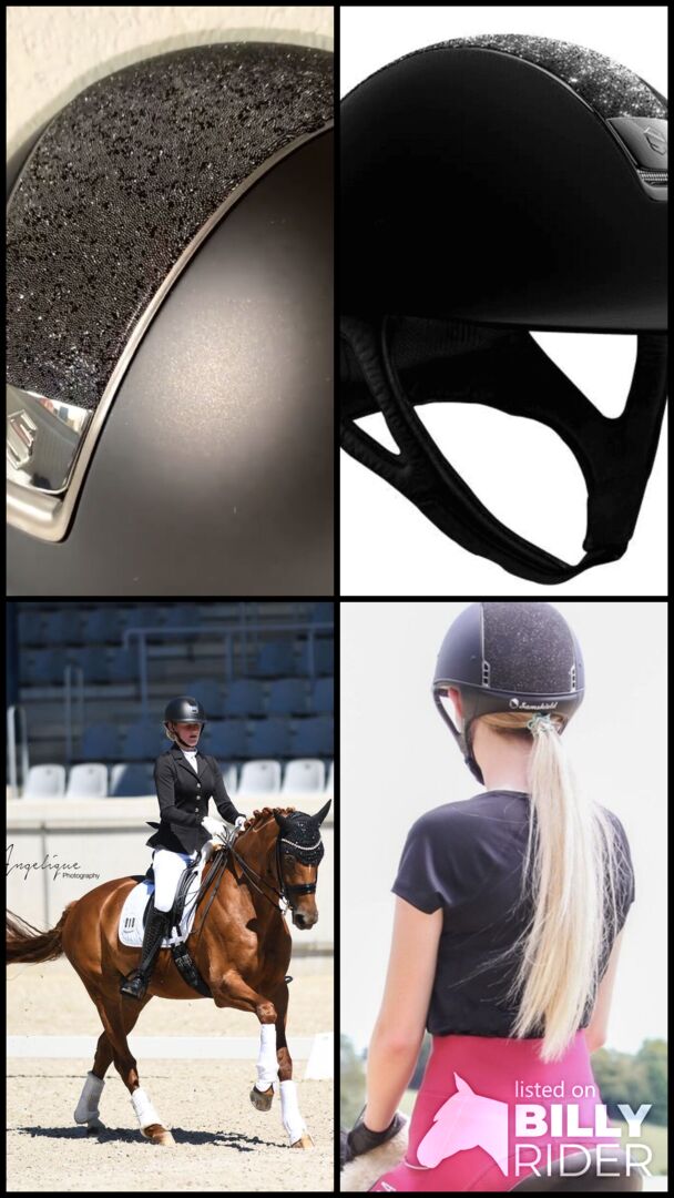 Samshield rijhelm - De helm heeft een dressuurhals. Hij is altijd zeer goed verzorgd geweest en heeft weinig tot geen krassen. Hij is ook valvrij. Hij heeft me altijd veel geluk gebracht op wedstrijden en voor opschudding gezorgd met de Swarovski steentjes. Ik verkoop het nu vanwege een nieuwe aankoop en de overstap naar een Miss Shield rijhelm.