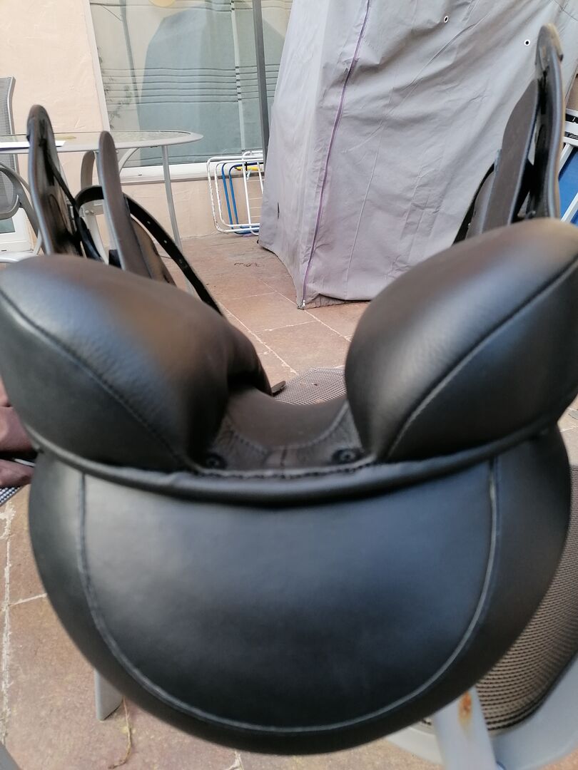 Besteld en geleverd in 2018, het geweldige zadel heeft eigenlijk maar ongeveer 1 jaar op het paard gezeten. Kamerbreedte W, kan perfect worden aangepast. De zadelklep is korter zodat hij beter op het paard past. De panelen zijn 1 cm korter en passen dus perfect op korte paardenruggen. Klittenband panelen voor aanpassing en pasvorm. In 2021 kreeg hij nieuwe zadelkleppen en nieuwe panelen van zadelmakerij Anke Just (950,-Euro, bon aanwezig!) en is sindsdien niet meer gebruikt. Het is droog en beschermd thuis. Tot het zadel terugkwam, was het paard om gezondheidsredenen uit de sport. Originele prijs was 3370,- Euro