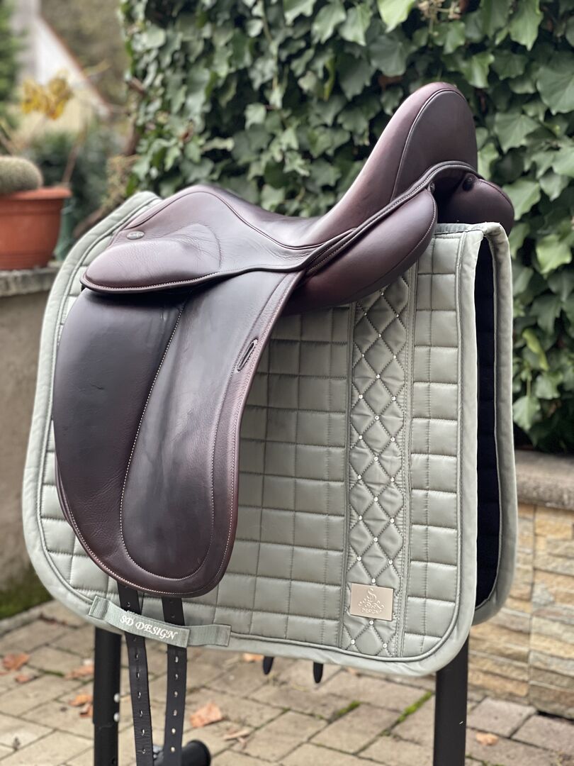 Santa Cruz dressuurzadel (zoals Childeric DGP) mono flap - Hier kun je een super chique, super comfortabel dressuurzadel kopen van de Argentijnse zadelmakerij Santa Cruz. Merken als Sattelglück, Hemano en Reitsport Fröhlich laten er hun zadels produceren.