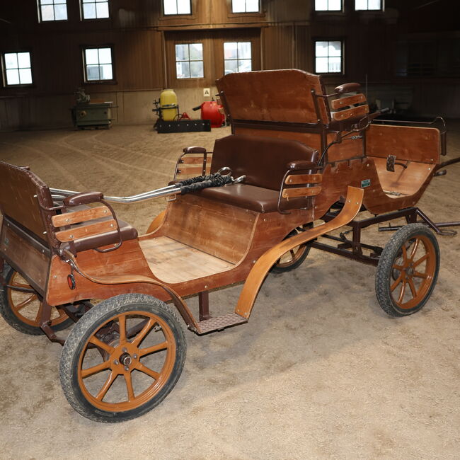 Merk: Sawa (Schmid Herdwangen) Type rijtuig: Vrijetijds rijtuig Staat: Goede staat (hout in goede staat, bekleding in goede staat) Rijklaar: Ja, koets is volledig rijklaar en rijdt zonder problemen Kleur: Natuurlijk hout