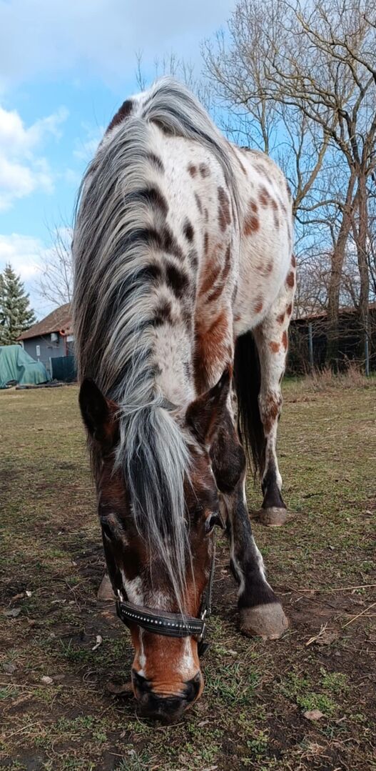 Schattig paardje in zeldzaam speciaal lakwerk - Onze Apollo, door ons liefkozend Pötty genoemd, is helaas op zoek naar een nieuw thuis omdat hij niet geaccepteerd wordt in onze kudde. Hij is ongeveer 145 cm lang en loopt op blote voeten. Pötty slaat ook een goed figuur voor de wagen! Hij is nu 5 jaar oud en is net ingereden. Hij beheerst dan ook zonder problemen de 3 basisgangen onder de ruiter. Pötty is een ontzettend lief en sociaal paardje. Hij is makkelijk te smeden en te beladen. Ondeugendheid zoals bijten en slaan zijn hem vreemd! Pötty is ook te bezichtigen in de buurt van 2424 Nickelsdorf!