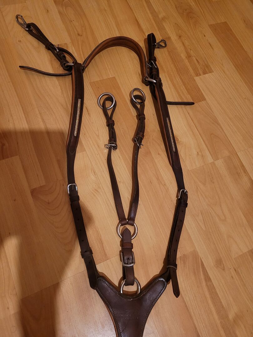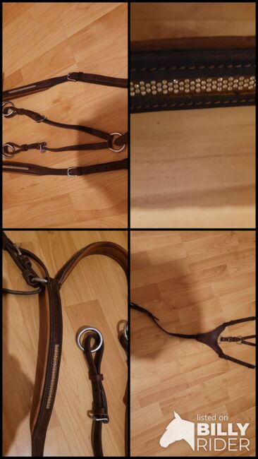 Schockemöhle wenkbrauwband en wenkbrauwband bruin - Bruin borstschild met glinsterende stenen en bijpassende wenkbrauwband