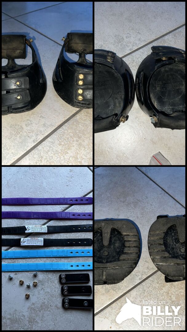 Scoot Boot maat 4 hoefschoenen met accessoires - Te koop namens Scoot Boot hoefschoenen in maat 4. Ze zijn veel gebruikt maar nog in zeer goede staat. De zool is niet versleten en heeft nog boven profiel. Er zitten verschillende riemen bij zodat je de kleur kunt matchen. De maattabel staat er ook bij, zodat je meteen kunt zien of ze de juiste maat zijn voor jouw paard. Er wordt een opbergtas meegeleverd zodat de schoenen niet afzonderlijk in de kast rondvliegen.