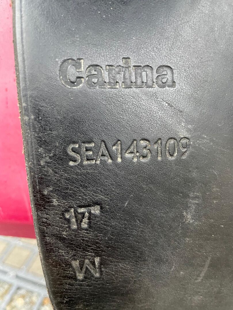 Model: Carina Zadel: 17 inch Zadelklep: normaal Schedelbreedte: M - vervangbare slokdarmplaat die je gemakkelijk zelf kunt verwisselen Kussenvulling: Siliconenwol Kleur: zwart Pasvorm: voor korte paarden met veel schouder en een rechte ruglijn