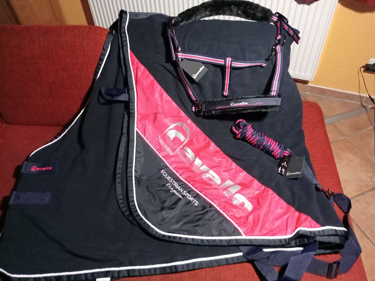 Cavallo zweetdeken Hanna donkerblauw maat L (145cm), zelden gebruikt. Helaas heeft het een kleine snee gehad aan de voorkant, maar dit is goed gestikt/gerepareerd. Ziet er verder als nieuw uit! Prijs per stuk 35€ VB