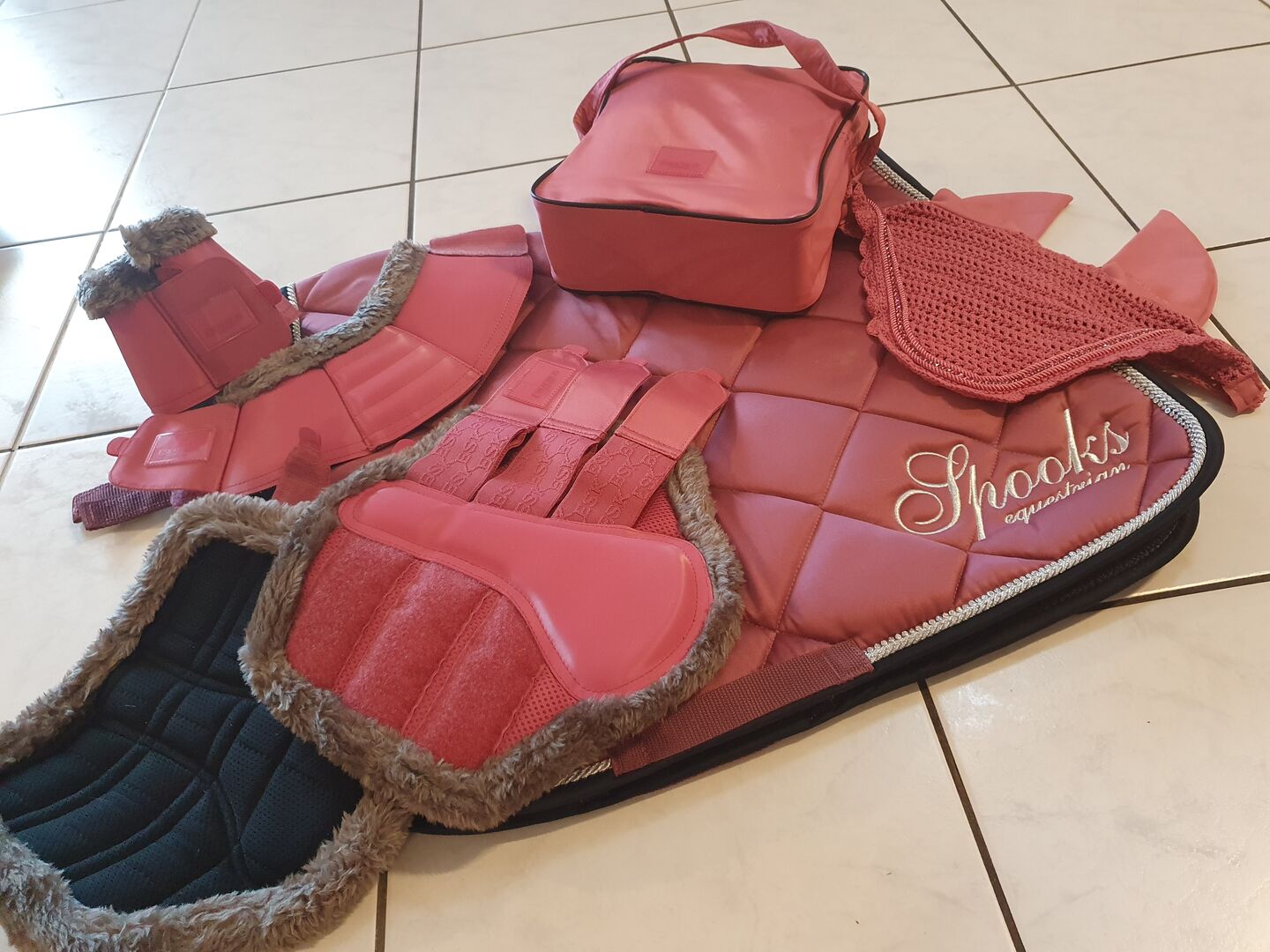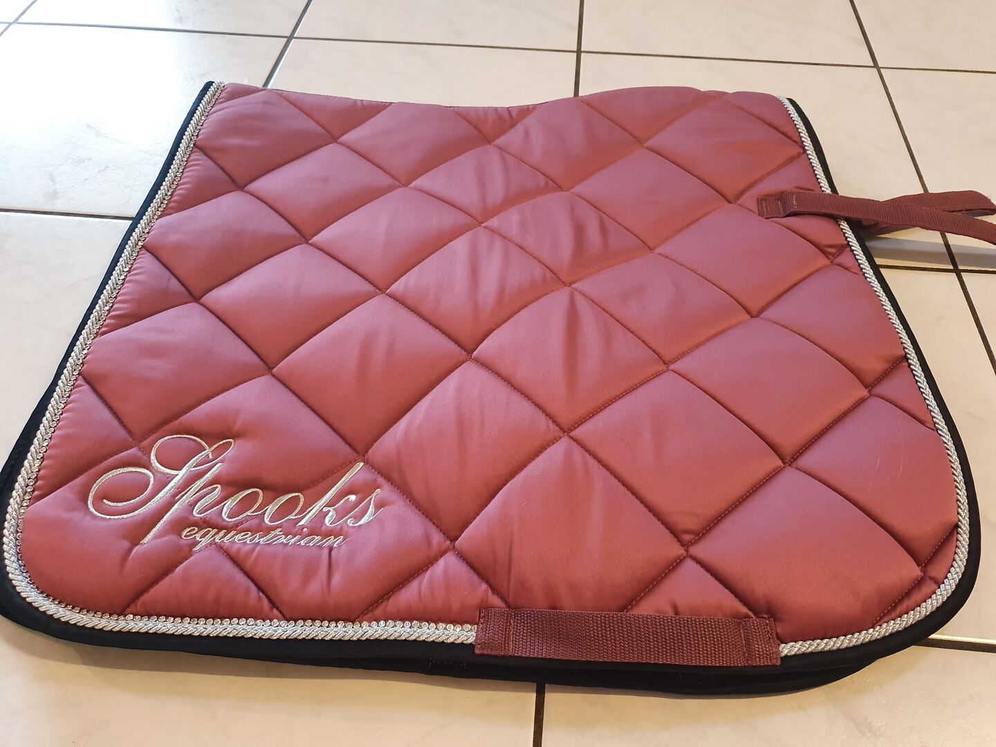 - Dressuurzadeldek van Spooks met glitters, zat maar 2x op het paard en is in super conditie, uiteraard fris gewassen, maar een paar haren zijn blijven hangen.
