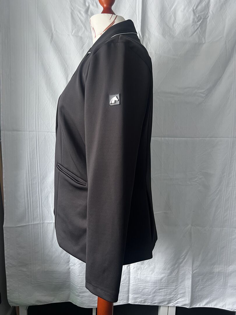 Showjas Zwarte Woud dames - Elegant, eenvoudig wedstrijdjasje met witte biezen, rekbare, zachte stof, geen beschadigingen, nauwelijks gedragen