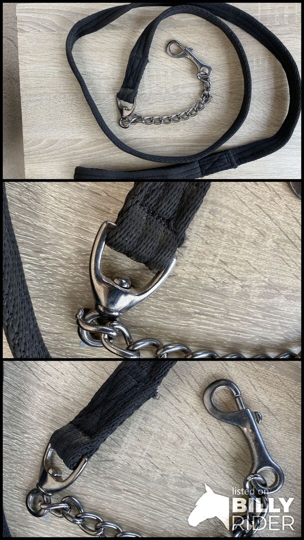 Showmaster Easy Control riemketting met harnas - Ik heb het een paar keer geprobeerd, maar kon er geen grip op krijgen. Ziet er als nieuw uit, alleen een beetje stoffig. Originele prijs 11,90€. Loodketting gemaakt van aangenaam zacht polyester webbing met handlus. Ketting en karabijnhaak zwart-metallic totale lengte 2 m, ketting lengte 30cm.