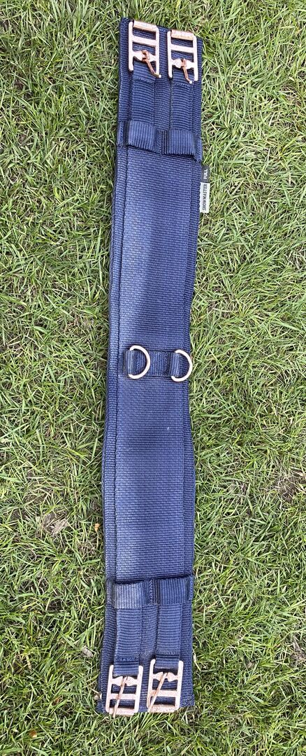 Showmaster longeersingel blauw/roze goud vol - Weinig gebruikte longeersingel van Showmaster in maat Full. Het beslag is roségoud met wat vliegroest, zoals te zien is op de foto's.
