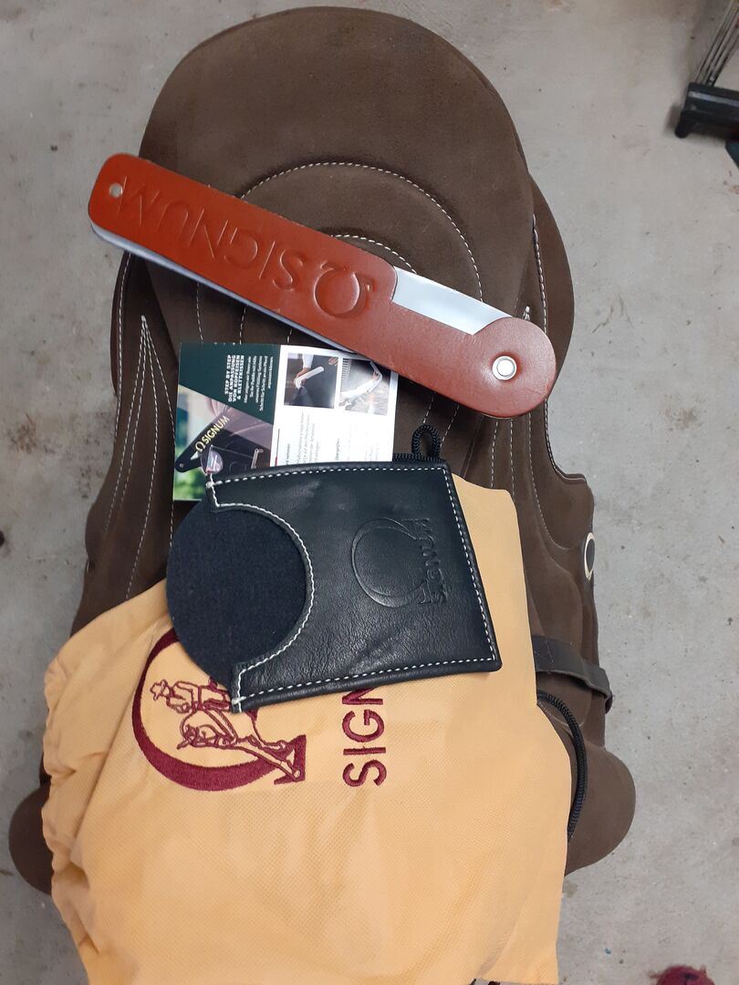 Signum Paddle&Velcro&Fitting Systeem Bundel (Chocolade, maat L) - Ik verkoop mijn als nieuwe signumpaddle in maat L / chocolate incl. accessoires en bruin leren mono stijgbeugelriemen. Gekocht 28.01.2025. De paddle is 4 keer op mijn paard geweest en vertoont vrijwel geen gebruikssporen.