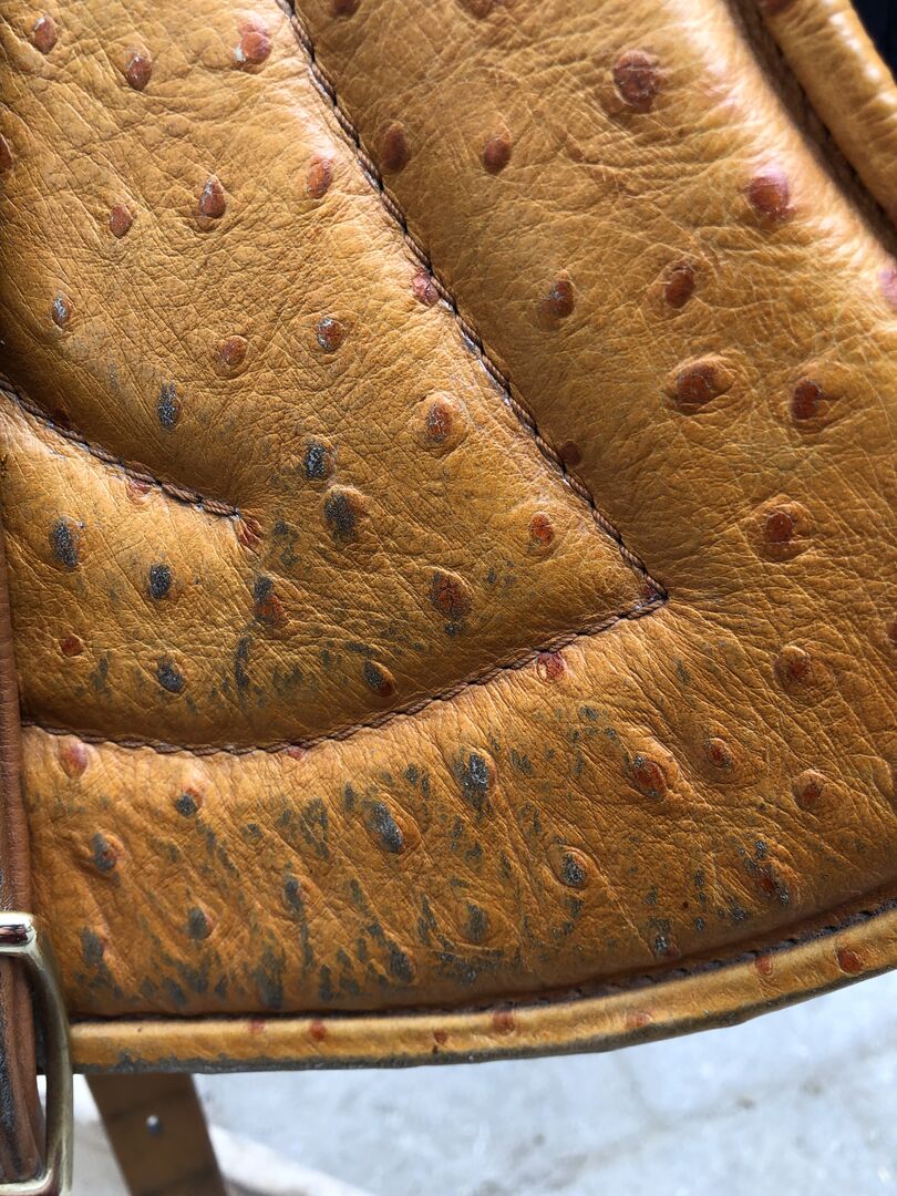 Het is een op maat gemaakt, ouder model, dus er is geen zichtbaar reliëf en de slokdarm is niet verwisselbaar. Signum heeft mij verzekerd dat het nog steeds een origineel is (contact voor verificatie kan worden doorgestuurd). Hierdoor is Signum coulanter bij het aanpassen van het zadel en zou het mogelijk zijn om de zadelboom volledig uit te wisselen. De kleur (maïs in struisvogelleerlook) is niet meer leverbaar en het is een nogal legendarische one-off. Omdat Gastrogard duur is, doen we er toch afstand van.