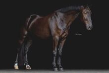 Fancy young Warmblood investment horse! Dressage, H/J, or eventing. Lord Ferragamo x Ferro x Formateur Earl Grey, aka Early, is a 2019 black bay Oldenburg gelding standing 16.2h sticked barefoot. He won 1st place at 2020 Young Horse qualifiers, was Reserve Champion at USDFBC 2021 Regional Finals with a 78.7% and a 79% from both judges and showed Materiale dressage in 2023 scoring 76.2%. Early schools training level dressage, trail rides, and has started over fences. He loves xc schooling and has jumped ditches, banks, coops, logs, and more! His sweet puppy dog personality, stunning looks, and eye-catching fancy Warmblood movement make him a barn favorite. He has been brought along slowly and correctly with an emphasis on the basics and longterm soundness. Early is a barefoot easy keeper and is up-to-date on shots, Coggins, deworming, sheath cleaning, hoof trimming, and floating. Current pre-purchase exam and CLEAN full set of X-rays on file (front feet, hocks, stifles, and back)