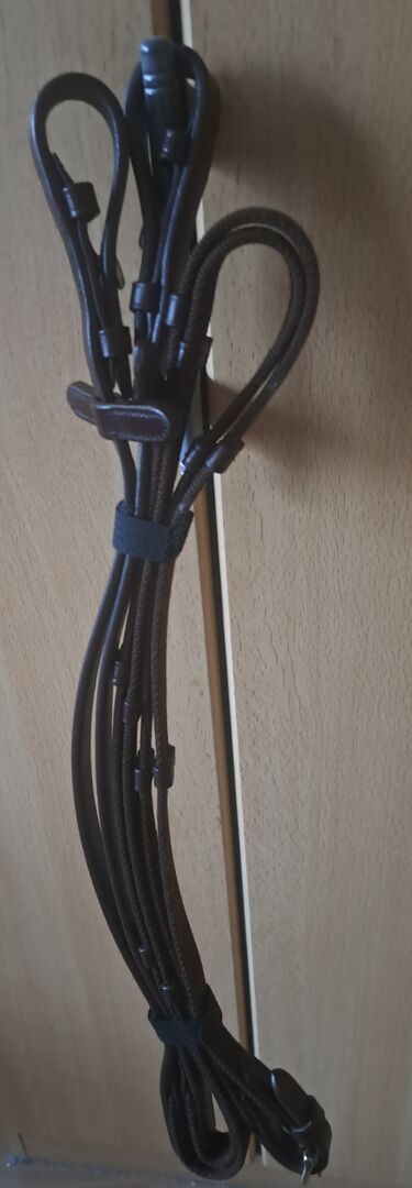 Sluiting + teugels - Prachtig rondgenaaid, donkerbruin hoofdstel met bijpassende teugels voor je warmbloed (vol). Absoluut zo goed als nieuw, nooit gebruikt. Was bedoeld als cadeau.