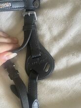 Ik bied een Engelse snaffle aan met gecombineerde neusriem van Barefoot. De snaffle is in de maat koudbloed en er zit een frontriem van Showmaster op. Het hoofdstel is speciaal ontworpen en aangepast voor grote paarden. Ik heb het korte tijd op een Litouwse koudbloed gehad.