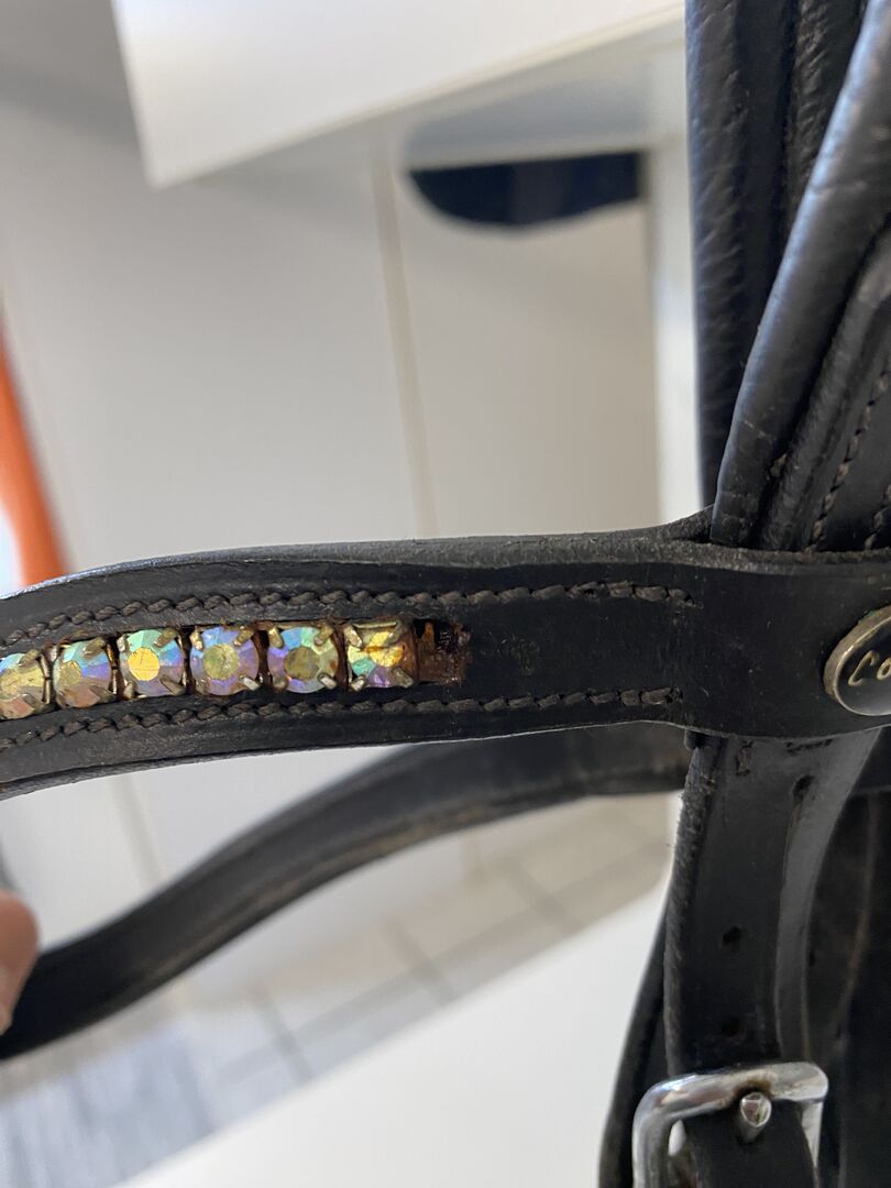 Snaffel met stras - De wenkbrauwband mist 2 steentjes, maar dat valt niet op.
