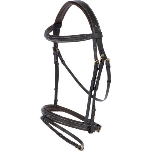 Het hoofdstel maakt indruk met zijn klassieke look gemaakt van fijn leer, dat verkrijgbaar is in de kleuren bruin en zwart. De aantrekkelijke witte sierstiksels geven het hoofdstel een elegante uitstraling die perfect is voor wedstrijden en dagelijks gebruik. Dankzij het verfijnde ontwerp is het hoofdstel snel en gemakkelijk aan te trekken, terwijl de zachte vulling zorgt voor een comfortabele pasvorm.