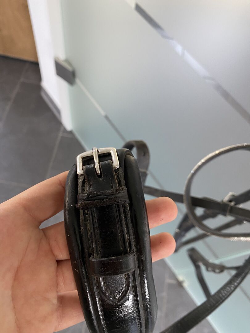 Snaffle maat VB - Snaffle in maat VB met Engels gecombineerde neusriem. Normale tekenen van slijtage. Zacht gevoerde neusriem. Zonder teugels.