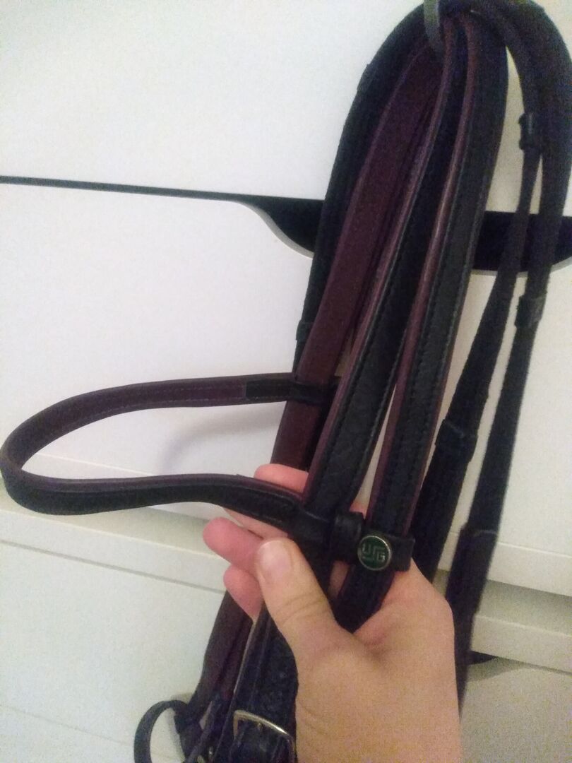 Snaffle USG VB/WB - Nieuwe snaffle, Het is helaas te klein voor mijn warmbloed met een grote ramskop.Heeft lang in de kast gehangen, maar is nieuw.Super zacht leer. Paarse voering, teugels incl.