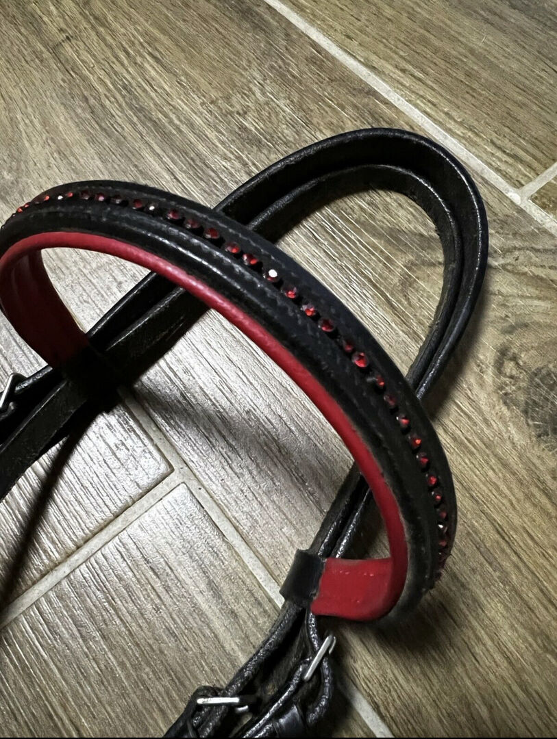Snaffle zo goed als nieuw - Het hoofdstel is zo goed als nieuw, het heeft maar één keer op het paard gezeten. Het hoofdstel heeft een superzacht en makkelijk te onderhouden leer. Ik heb het onlangs gereinigd met lederverzorging. De teugels en het hoofdstel zijn ook inbegrepen.