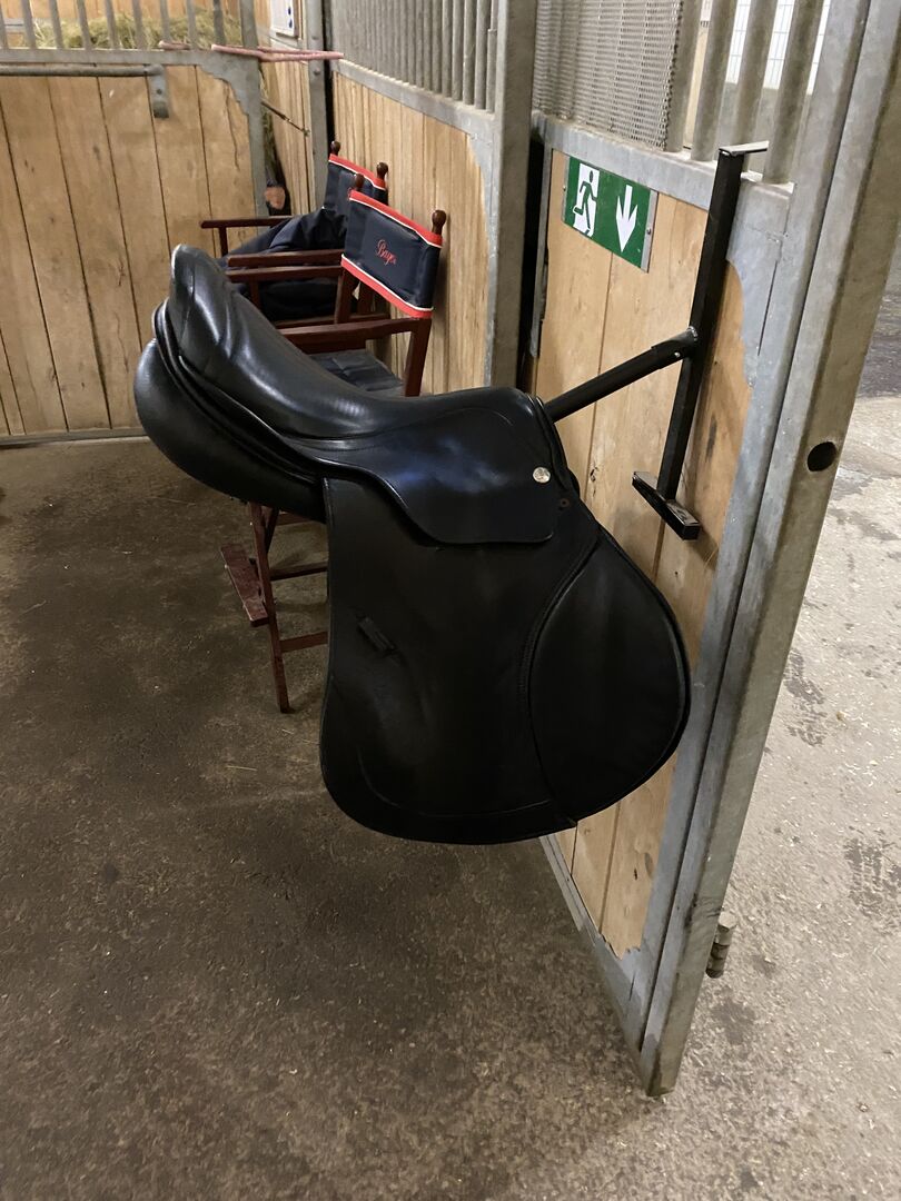SNAP : Springzadel zwart ZALDI Star 2G 730,-€ - Ik verkoop een springzadel in perfecte staat, 18", zwart, met voorgesneden, met de extra optie "klittenband" onder de zadelklep (zie foto's) de kamerbreedte is momenteel 34 (gemakkelijk te veranderen!) LET OP: alleen deze maand (februari 2023) in plaats van 850,-€ nu voor 714,-€