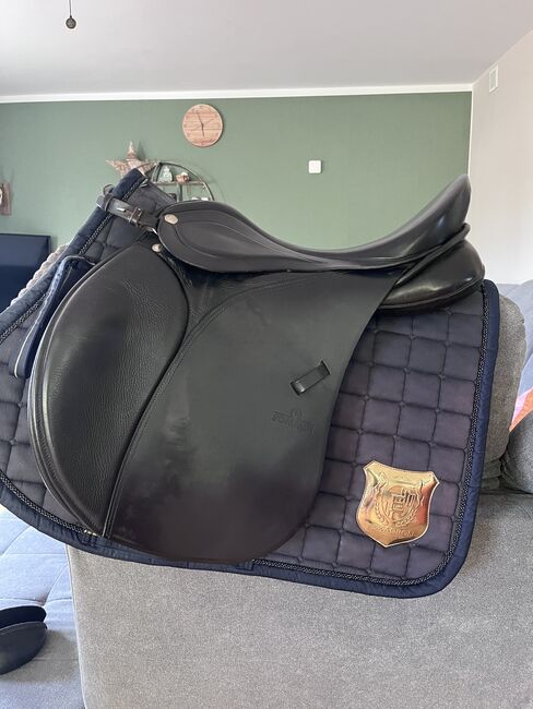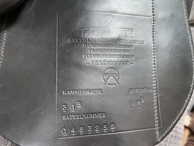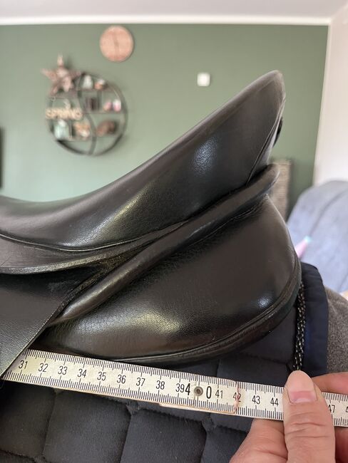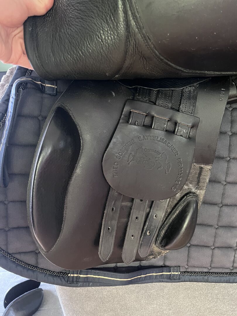 Het zadel is gebouwd in 2014, maar is pas later gekocht van een zadelmaker, en heeft een zitmaat van 17,5" en een fabriekskamerbreedte van 31,5 (gemiddelde breedte - andere fabrikanten hebben ongeveer een KW 33/34)