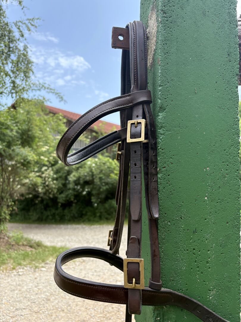 Het hoofdstel is af en toe gebruikt. Het heeft normale gebruikssporen, maar is in perfecte staat. Het hoofdstel wordt verkocht zonder teugels.