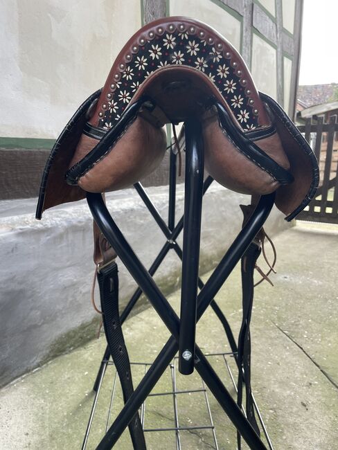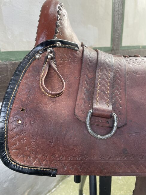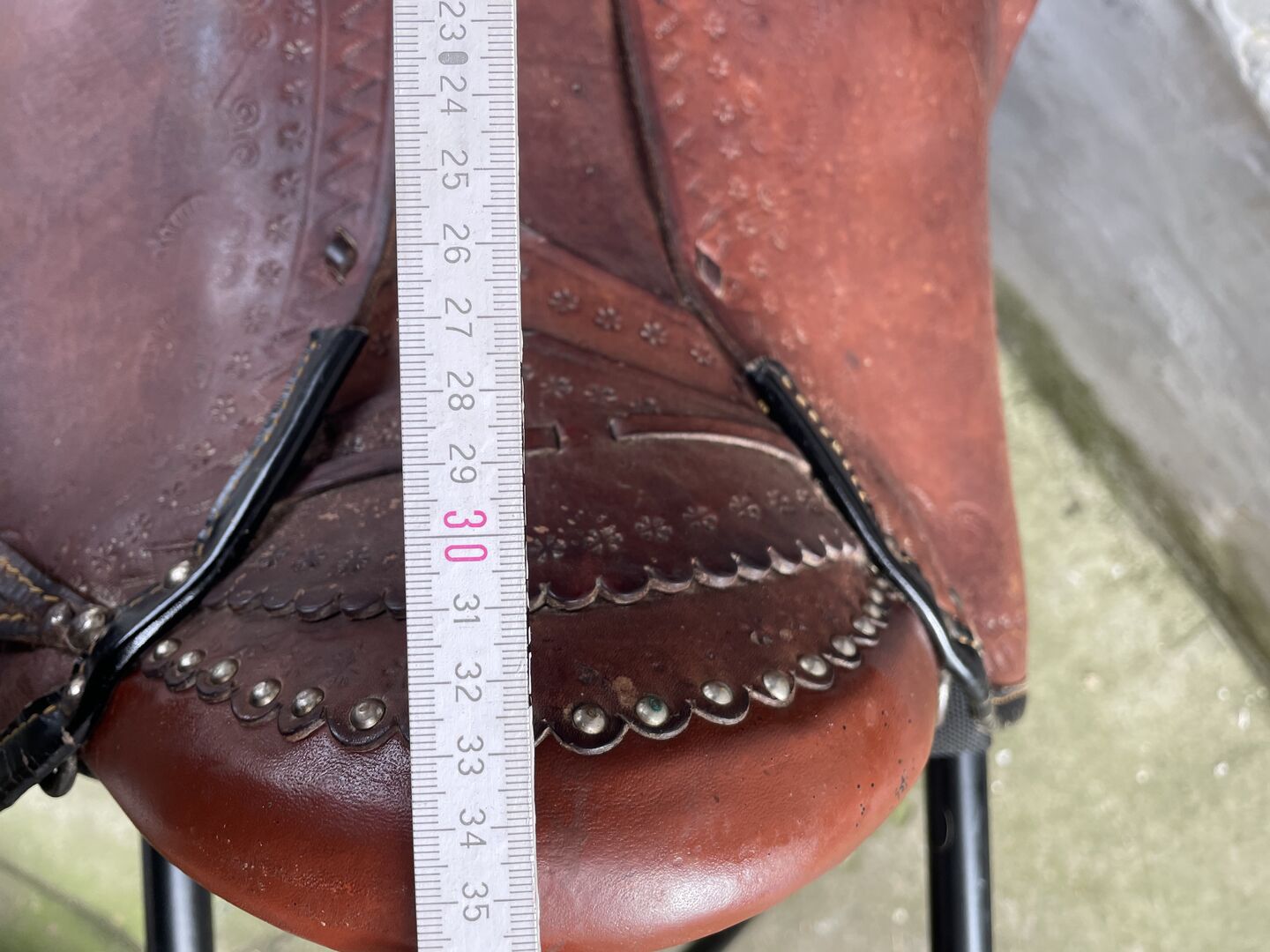 Spaans Portugees barok zadel - Een zadel van een speciaal soort Graad maal 46 cm lang Zie foto's voor afmetingen Op aanvraag ook met western singel, er zijn verschillende lengtes beschikbaar