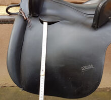 Totale lengte ca. 48cm, contactoppervlak ca. 45cm. Lengte zadelklep vanaf de galop ca. 32cm.