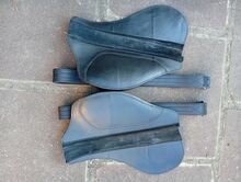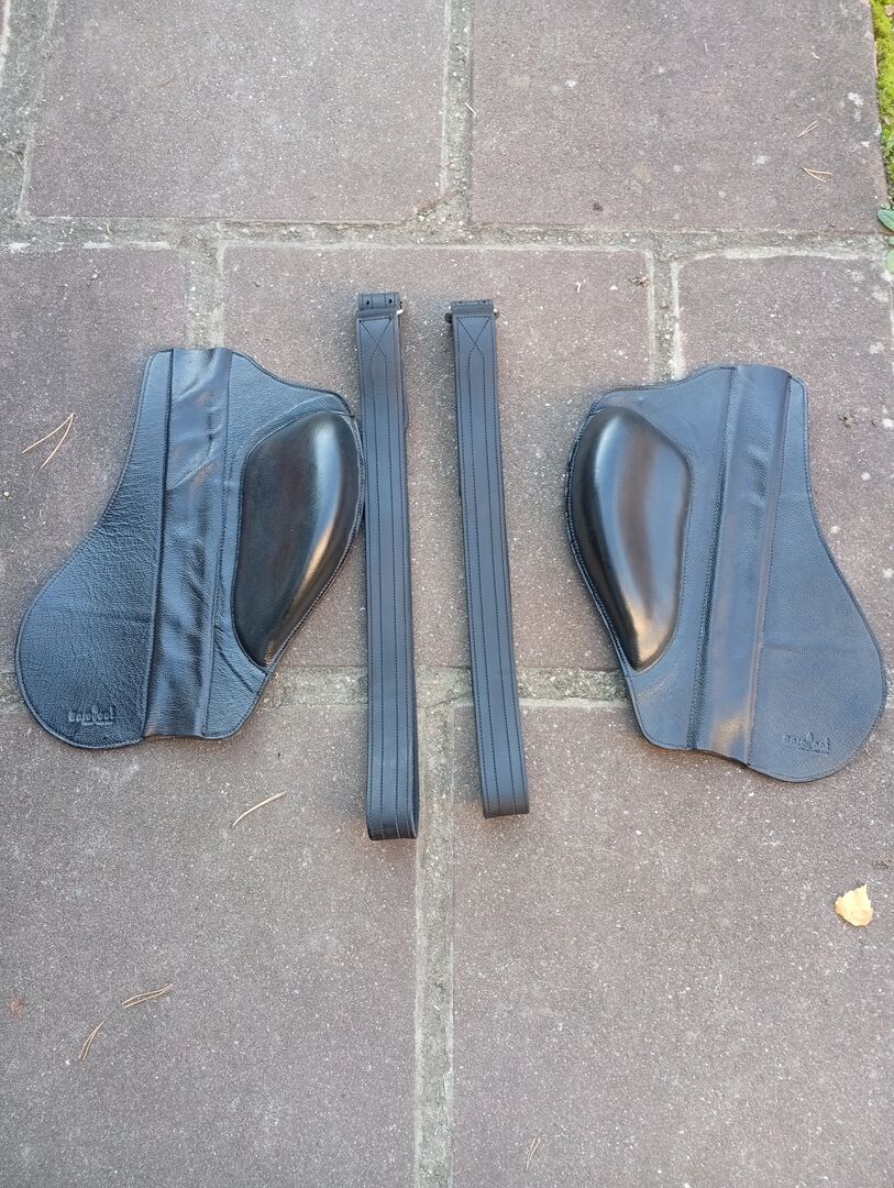Spatbord met knierollen incl. riempjes zwart als nieuw Barefoot of vergelijkbaar. - Te koop Barefoot spatborden met knierollen, zwart, MET originele bijpassende STRAPS, 4cm breed. NP zonder riempjes is 135,-€ Ook te gebruiken op andere zadels met smalle riempjes. Artikel omschrijving van de fabrikant: "De spatborden met geïntegreerde knierollen bieden niet alleen aanzienlijk meer veiligheid - in het veld en tijdens de dagelijkse training, de ruiter zit ook veel comfortabeler. Het kniegedeelte wordt verhoogd door het zachte kniestuk en ondersteunt zo de kniesluiting van de ruiter. De 'SUPPORT' spatborden hebben holtes aan de voor- en achterkant waar stijgbeugelriemen doorheen gestoken kunnen worden. Stijgbeugelriemen worden niet meegeleverd. Geschikt voor alle zadels zonder knierollen, voor stijgbeugelriemen met een lengte van 140 cm (breed of smal)" Verzending is mogelijk tegen verzendkosten. Particuliere verkoop, geen garantie of retournering.