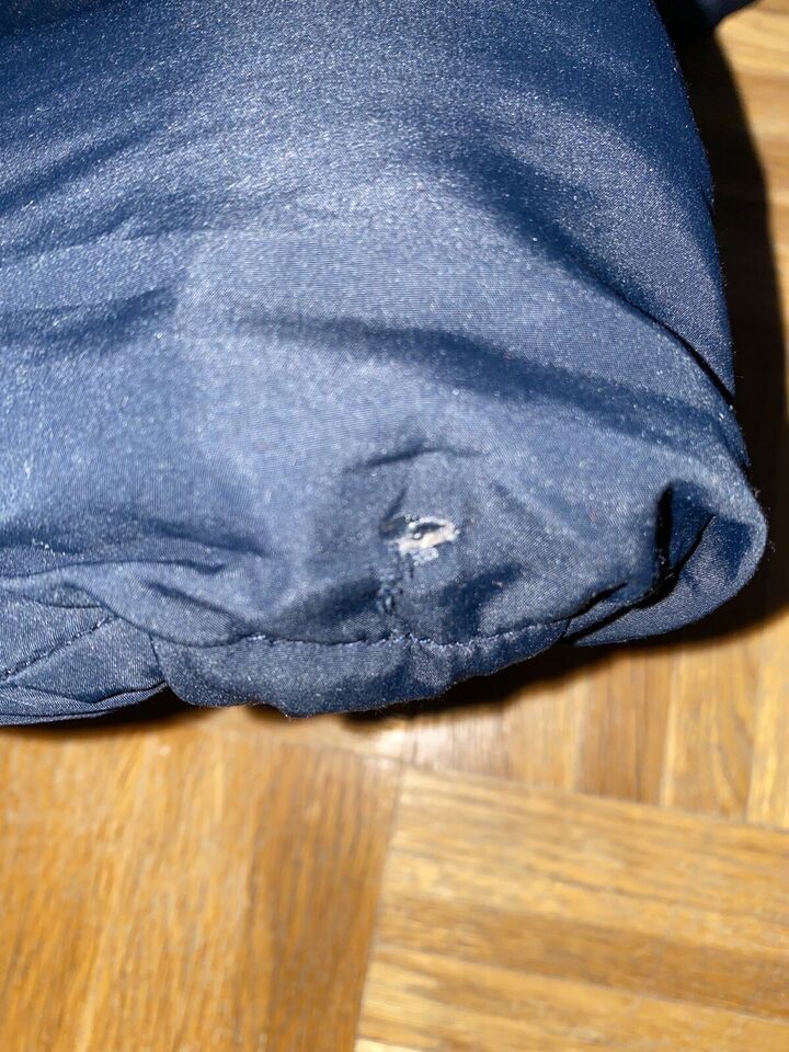 Er zit een klein gaatje in elke mouw, maar dat stoort niet (zie foto).