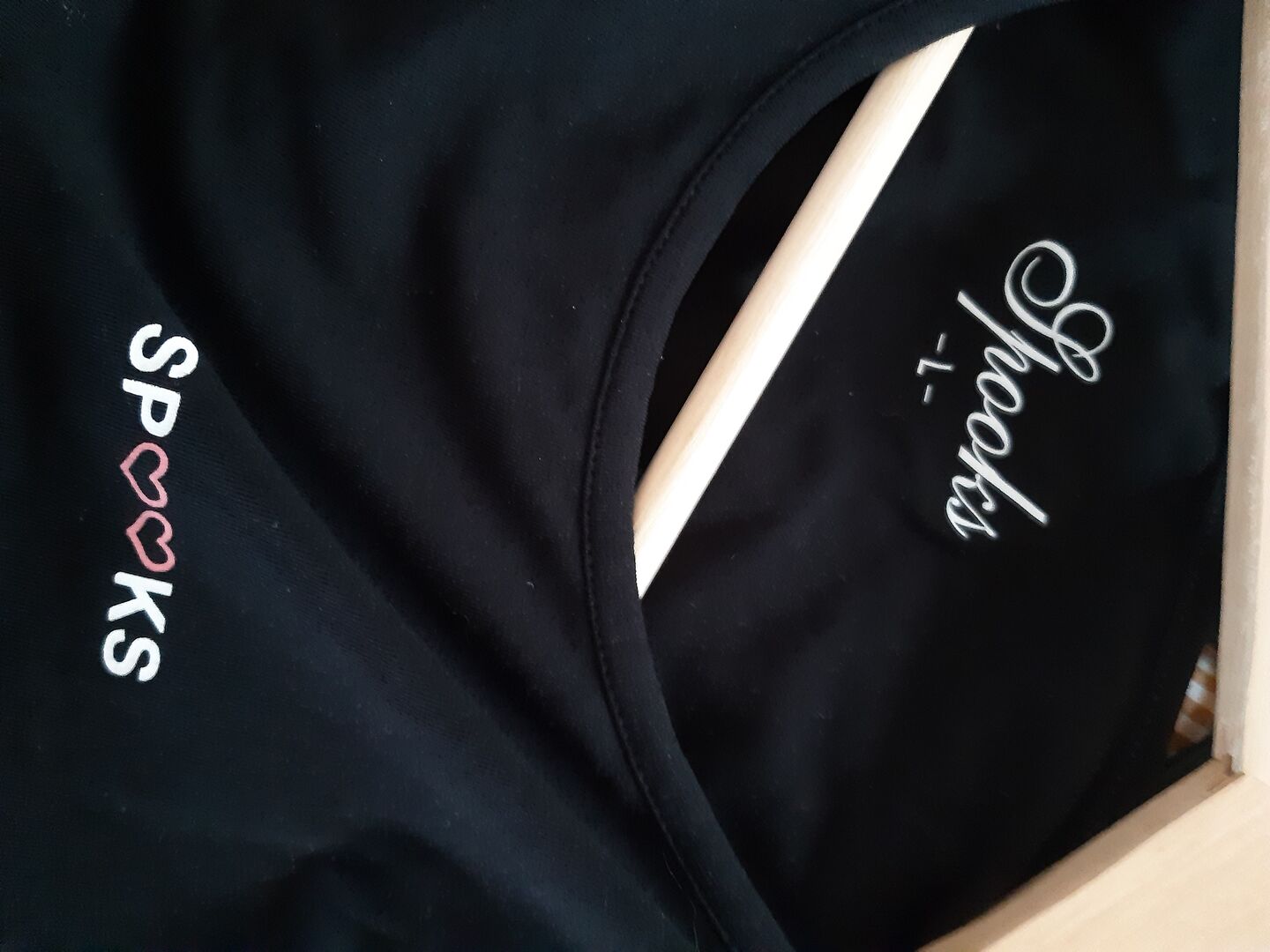 Zwart shirt met lange mouwen van spooks met een geraffineerde schouderuitsnijding. In zeer goede staat.