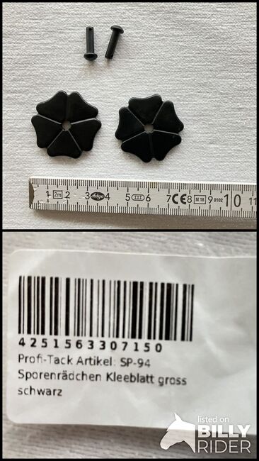 Sporenwielen - Aan het uitzoeken. Klaverblad tandwiel, zwart van Profi-Tack. Ongebruikt. Nieuw. In originele verpakking. Je bent welkom om ze op te halen of tegen vergoeding op te sturen. Particuliere verkoop.