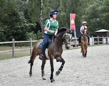 Sportpony/ Rijpony/ Kinderpony/ Allrounder - Sergeant Pepper (Pepsi) is een Duitse rijpony (Welsh B-Arabier mix), 146 cm lang en momenteel 15 jaar oud. Hij doet nu 6 jaar mee aan Mounted Games en is dus onbevreesd en gewend aan grote rijhallen en arena's met veel publiek. Hij is getraind in dressuur tot A-niveau en is altijd fijn aan de hulpen. Hij laat geweldige gangen zien. Hij houdt ook van springen en is betrouwbaar. Pepsi is een zelfverzekerde pony en geeft zijn ruiters altijd veel vertrouwen en kan door iedereen goed gereden worden. Hij gaat alleen en met andere paarden op pad en is altijd makkelijk in de omgang. Hij is een hardwerkende pony, maar nooit nerveus en kan daarom ook zonder problemen door kinderen bereden worden. Hij is makkelijk te smeden en te beladen en heeft geen ziektes. Hij is natuurlijk altijd ontwormd en ingeënt. Indien gewenst kunnen passende accessoires in goede conditie worden aangeschaft.