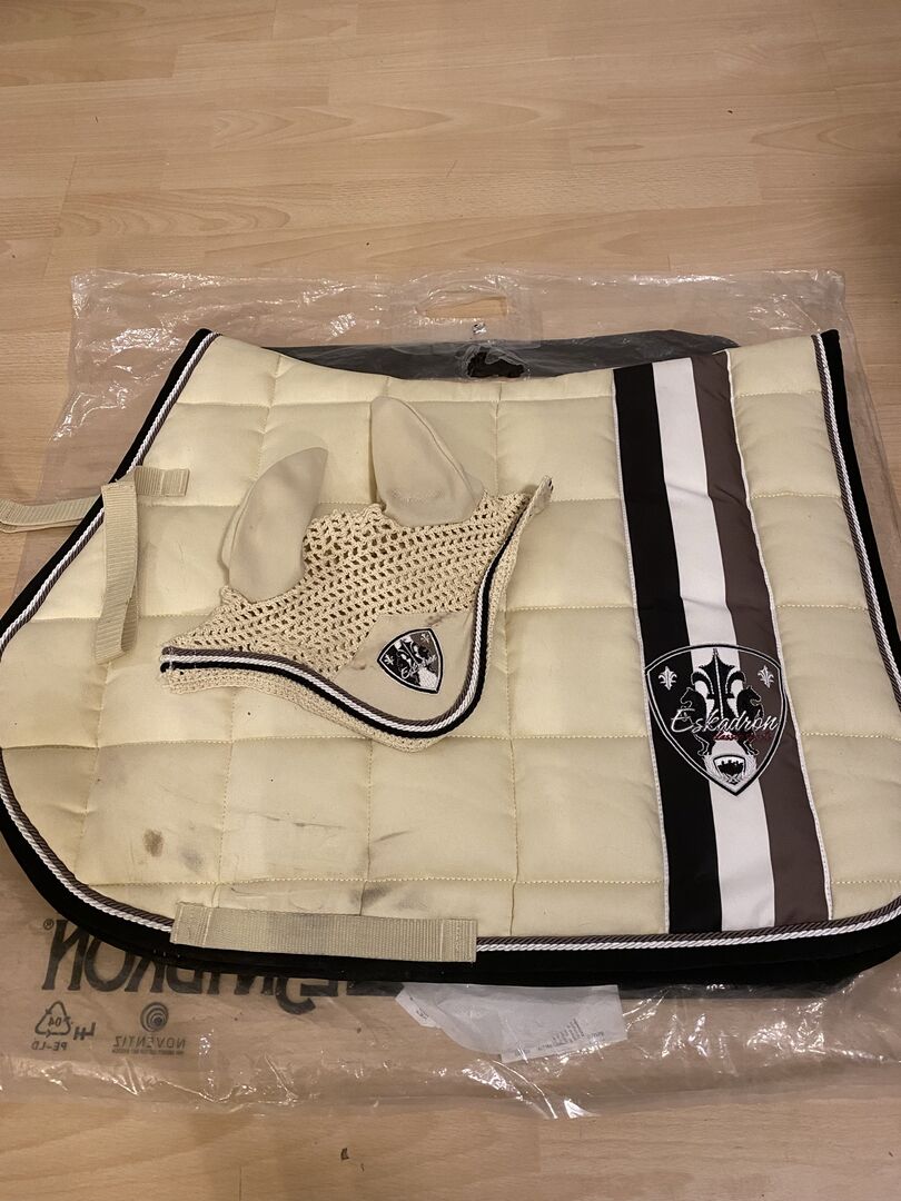 Spring zadeldekje met Vliegen Oren - Verkoop van de populaire Eskadron Vanilla met vliegenmuts. Ik heb deze set maar twee keer gebruikt op shows. Het was vroeger nieuw en had daardoor alleen zadelsporen. De set was niet gewassen toen de foto's werden genomen.