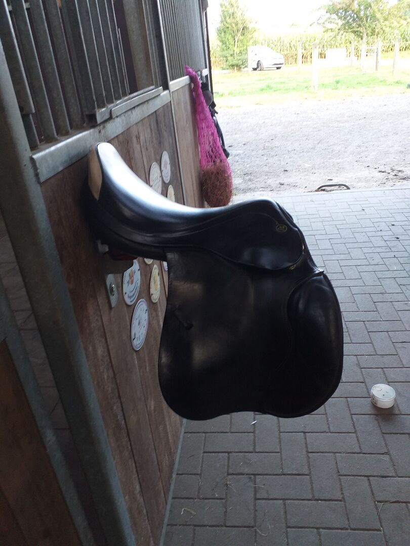 Springzadel - Hier verkoop ik een goed bewaard Prestige springzadel in het zwart. De lengte van het zadel is 43 cm en het heeft een gemiddelde breedte van de slokdarm. Het zadel is vers gepolsterd.