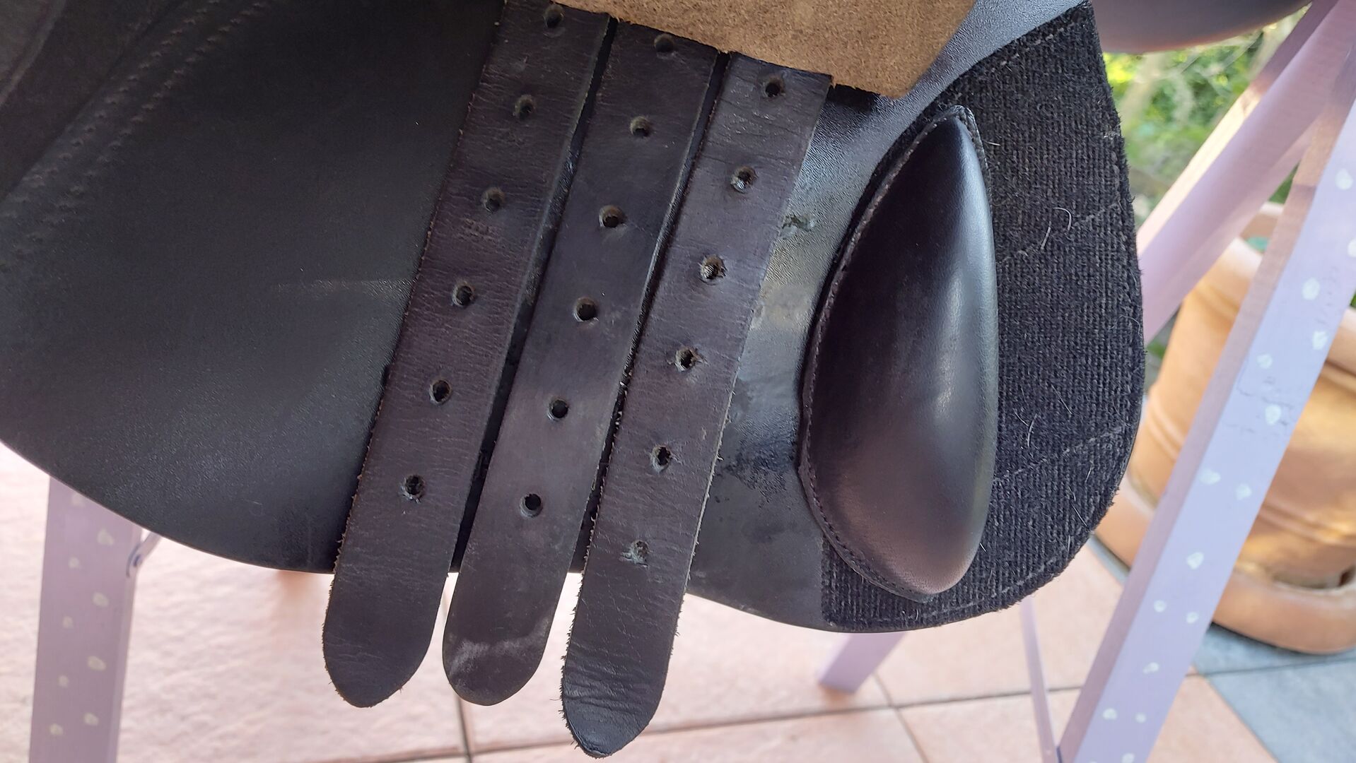 Het zadel zal uiteraard vooraf opnieuw worden schoongemaakt. Er zijn geen scheuren of krassen in het leer. Als je goed kijkt, zie je alleen minimale sporen op de zadelklep. Dit is echter onvermijdelijk bij een gebruikt zadel. Het zadel is nog in zeer goede staat.