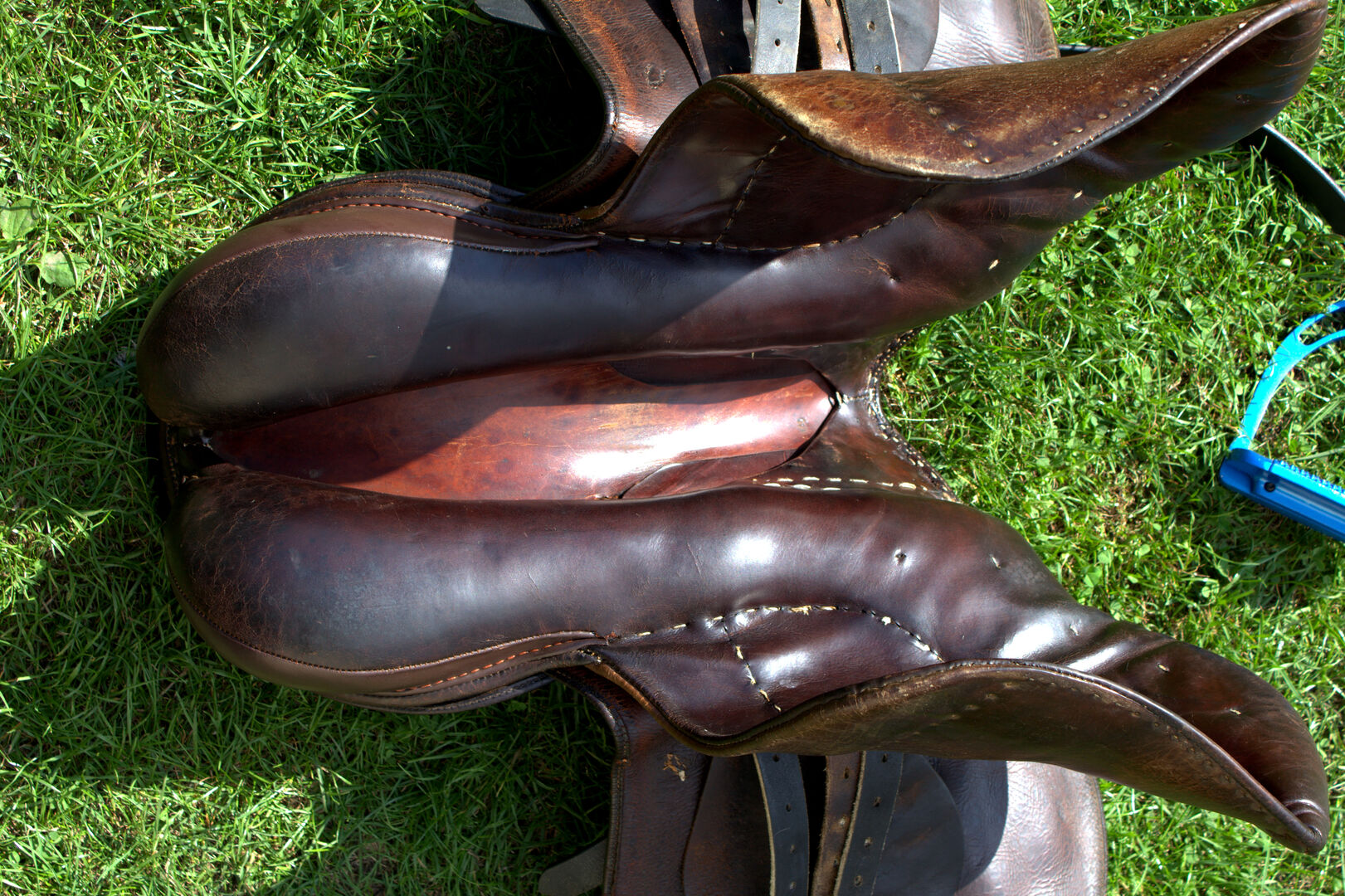 Het zadel is in zeer goede staat, regelmatig geolied. Er zijn gebruikssporen op het leer, maar niets dat het gebruik beïnvloedt.