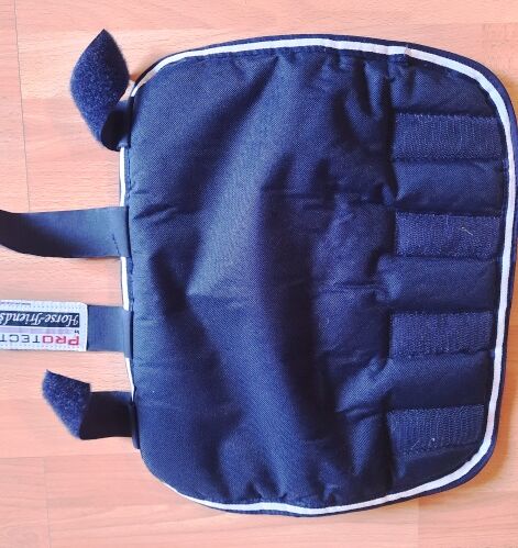 Stabiele/transport beenkappen set van 4 - Ik bied aan een set van 4 transportlaarzen van Loesdau, kleur navy, maat pony, die ook als stallaarzen gebruikt kunnen worden. De slobkousen zijn een paar keer gebruikt en hebben geen beschadigingen of iets dergelijks. Ze zijn gevoerd met teddy pluche en sluiten met 4 klittenbandjes. Vers gewassen. Ik heb de laarzen gebruikt voor een rijpony van 140 cm.