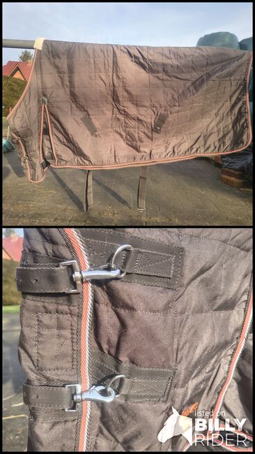 Stal deken/onderdeken - Ik verkoop een vloerkleed/staldeken met een 50g vulling in maat 145 omdat ik het niet langer nodig heb. Het tapijt is in zeer goede staat, geen defecten of gaten. Het tapijt is gewassen.