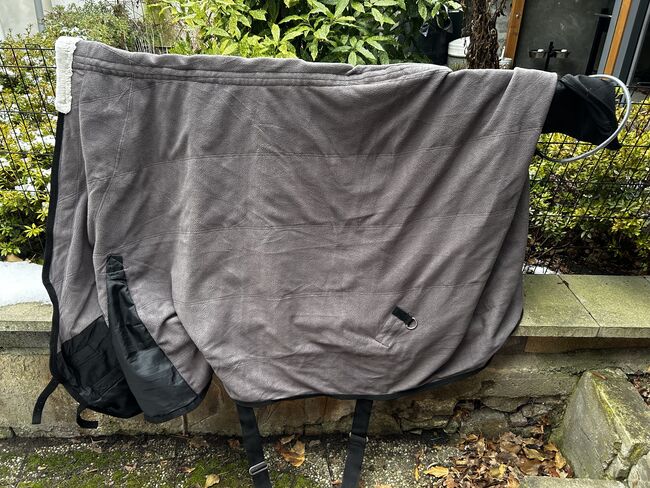 Staldeken Harrys Horze 175cm - Harrys Horze staldeken 0g met fleece vulling Maat 165cm maar valt uit als een 175cm daarom wordt deze ook verkocht. Geen gaten geen gebreken Vers gewassen NP: 55€