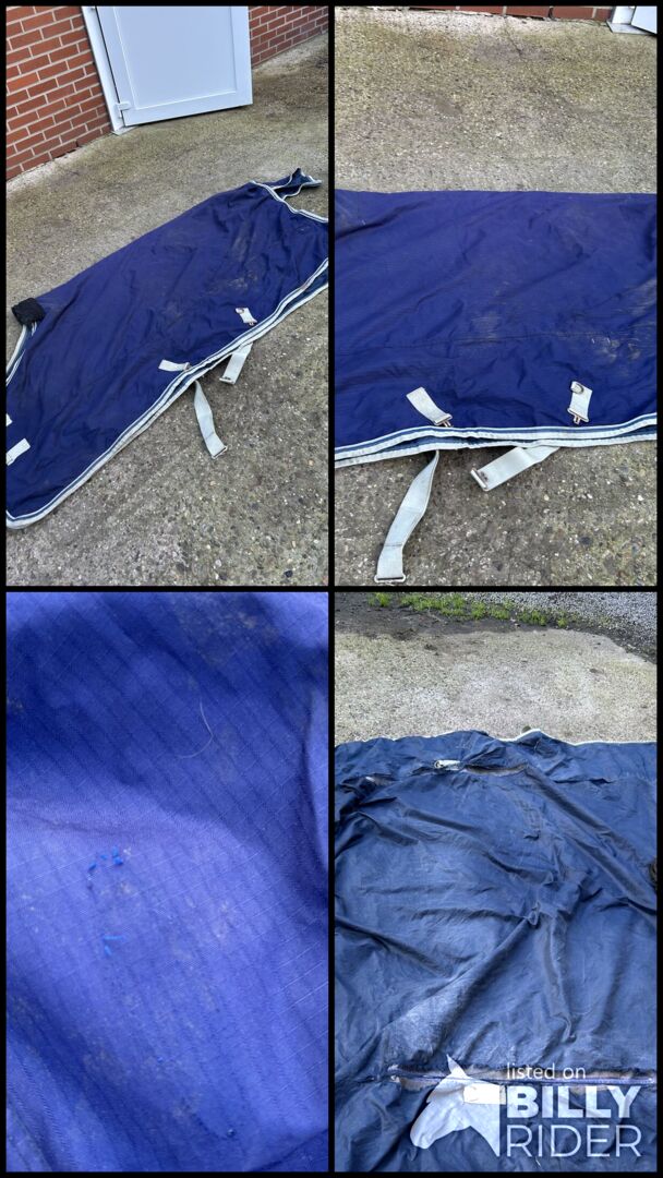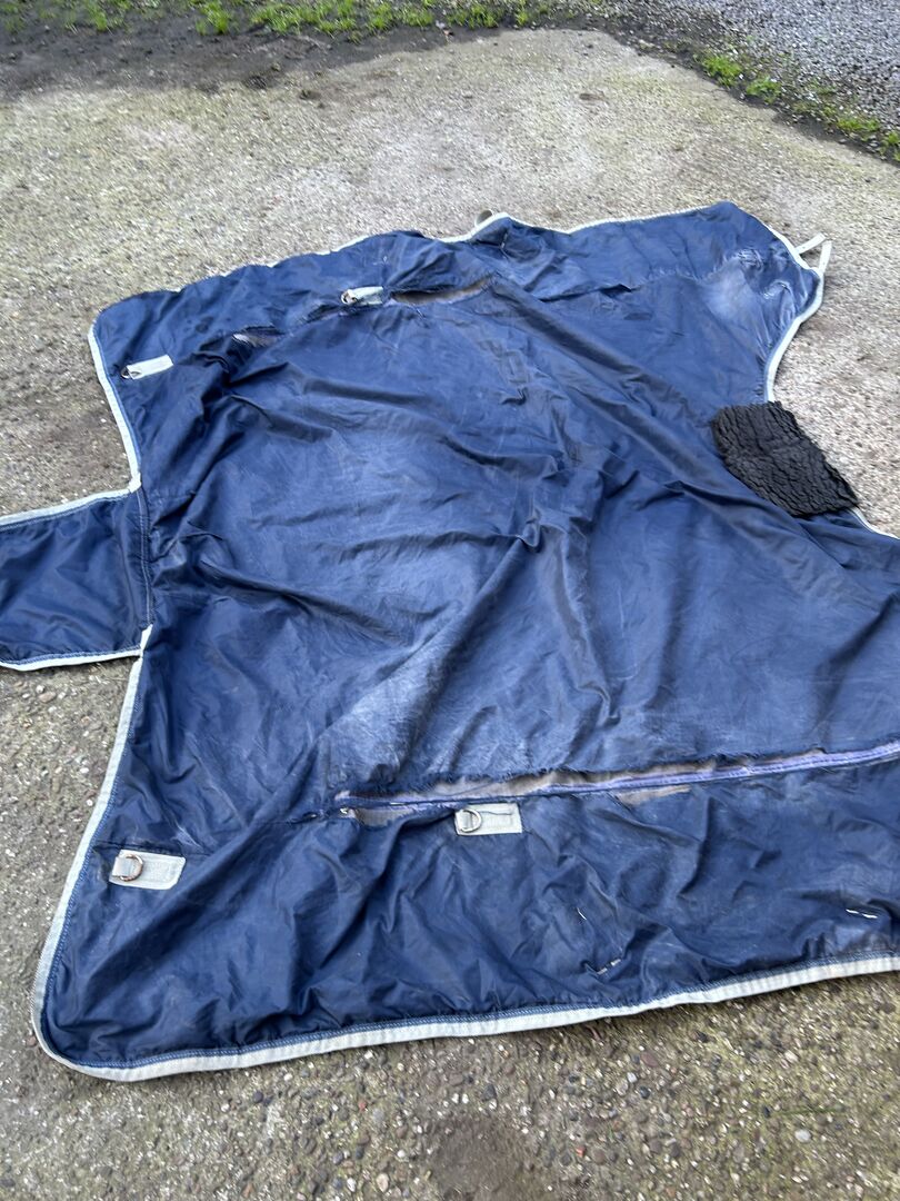 Stalhoes niet regenbestendig - Ik verkoop deze staldeken die ik zelf ongeveer een maand geleden gekocht heb voor mijn paard, omdat hij in de open stal staat heb ik hem niet meer nodig. Ik dacht dat hij regenbestendig was maar dat was niet zo. Hij is ook gescheurd aan de zijkanten en heeft geen staart en ook geen beenbanden , daarnaast is een haakje van een buikband verbogen en roest de deken wordt nog schoongemaakt maar is goed dicht Maat: 145cm.