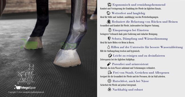 Your opinion on the product 'MEGASPAR - Online Shop Stallmatten Preis pro Stück | Gummimatten | Stallboden | Pferdematten' counts! Help others make their decision – share what you liked (or didn't)!