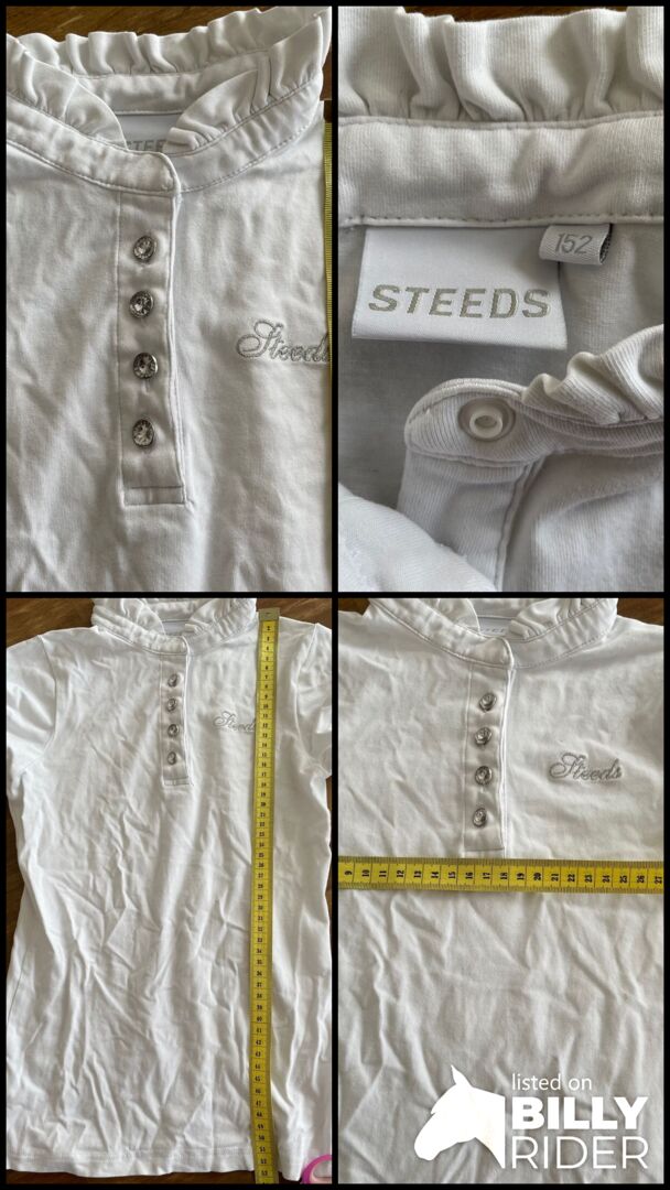 Steeds Show Shirt Shirt wit met ruche kraag maat 152 - Mijn dochter groeit en daarom past de showblouse van vorig jaar haar niet meer. Het past bij haar maat en is in zeer goede staat. Misschien vind je hier een nieuwe drager...