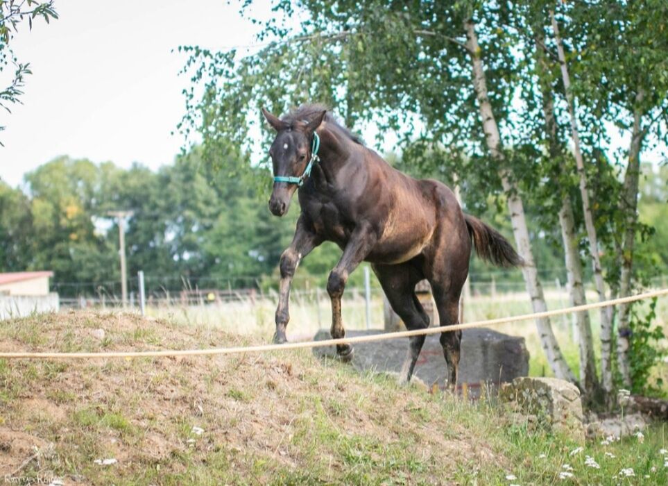 sterk karakter rustig Quarter Paint paard merrie speenling Ranchriding - Ik ben kleine Sikari (Indiaas = lief) en ik ben een zwart merrieveulen. Ik ben geboren in mei 2025 en zoek een liefdevolle eigenaar na het spenen in december. Mijn vader is Black Starbuck, een 154 cm grote quarterhengst met de allerbeste afstamming. Mijn moeder is Special Velvet Mount, een premie merrie (1.46). Mijn moeder is 6Panel n/n. Vanaf dag één ben ik een echte deugniet die veel wil knuffelen en alles wil ontdekken. Als ik groot ben, zal ik ongeveer 1,50 meter lang zijn. Ik ben nu al een heel sterk en gespierd veulen, een super toekomstig ranchpaard. Ik ben dapper genoeg om alles aan te pakken en ik weet precies wat ik wil. Dat heb ik van mijn moeder :) Ik groei op in een gemengde kudde in een paddock-trail omgeving. Dus ik kan rennen, spelen en eten zoveel ik wil. Ik hoop dat dat zo blijft bij mijn nieuwe baasje. Ik wil niet in een doos, zelfs niet 's nachts. Tot het spenen wordt Sikari regelmatig ontwormd, maakt ze kennis met de hoefsmid en leert ze het veulen-ABC. We vinden het heel belangrijk dat onze veulens braaf en vriendelijk zijn. Sikari krijgt ook een paardenpaspoort van het PHCG en APHA-papieren. Als Sikari uw interesse heeft gewekt, neem dan contact met ons op voor meer informatie. Onze veulens worden alleen geplaatst in stallen die geschikt zijn voor de soort (open stal/actieve stal/paddock trail etc.) en in liefdevolle handen die ook bereid zijn om hun kleine schat een leven van opgroeien en vrije beweging te bieden. www.harzhof-minsleben.de
