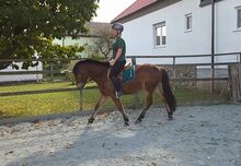 Hij heeft sterke zenuwen, is niet springerig en dekt grotere paarden goed. Vanwege zijn leeftijd zal hij natuurlijk niet alleen aan kinderen gegeven worden etc.... hij is nog geen betrouwbaar paard.... maar zoals ik hem tot nu toe ervaren heb, toont hij de allerbeste voorwaarden om een echt geweldige betrouwbare pony te worden.