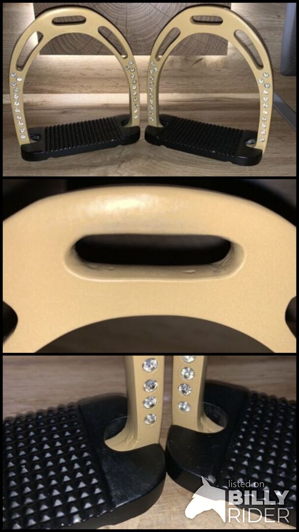 Stijgbeugel - Hier verkoop ik mijn nauwelijks gebruikte stijgbeugels in goud met strassteentjes.