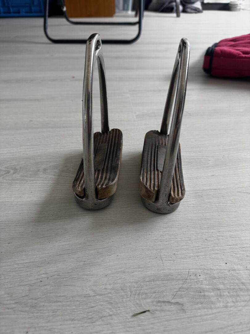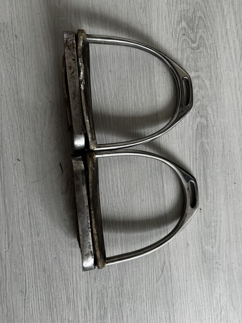 Stijgbeugel - Stijgbeugels met afgeschuinde inzetstukken. Deze kunnen op elk moment vervangen worden. Particuliere verkoop dus geen garantie of retournering. Verzending mogelijk tegen kostprijs.