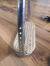 Stijgbeugels plus riemen - Ik bied zilveren stijgbeugels aan met riempjes en groene glittersteentjes aan de zijkanten